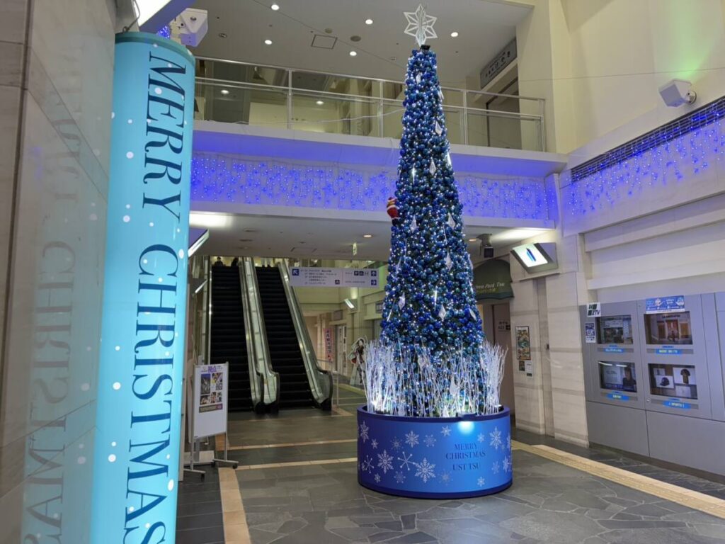 【デートのポイント】 津駅ビル「アスト津」の前に、青と白を基調とした高さ約6mのクリスマスツリーが登場します。お仕事帰りの短時間デートや、駅での待ち合わせの瞬間にパッと華やかな気分になれる、婚活初級者にもおすすめの場所です。